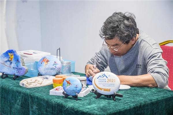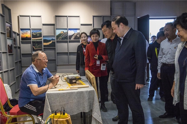 參會領(lǐng)導(dǎo)還共同欣賞了石畫藝術(shù)非遺傳承人陳智旺在張家口文化中汲取靈感、提取張家口傳統(tǒng)藝術(shù)元素所創(chuàng)作的石畫系列文創(chuàng)精品,由一級工藝美術(shù)大師袁兆威帶來的長城博物館主題烙畫的制作展示,張家口面塑工藝大師楊海軍展示的冬奧主題面塑制作以及遼代點茶法的現(xiàn)場展示。