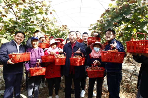 隨后小分隊(duì)來到敦厚村的葡萄種植大棚,豐收果實(shí)、高掛枝頭,志愿者與種植農(nóng)戶一起采摘葡萄,共話鄉(xiāng)村振興、扶貧攻堅(jiān)、增產(chǎn)增收,葡萄大棚中滿是喜悅的笑聲。