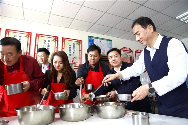 慰問演出結(jié)束后,“同心圓夢藝術(shù)團(tuán)”文藝志愿者來到新崗村幸福食堂,為村里留守的孤寡老人和殘疾老人當(dāng)起了“食堂服務(wù)員”,與老人們共同歡度佳節(jié);